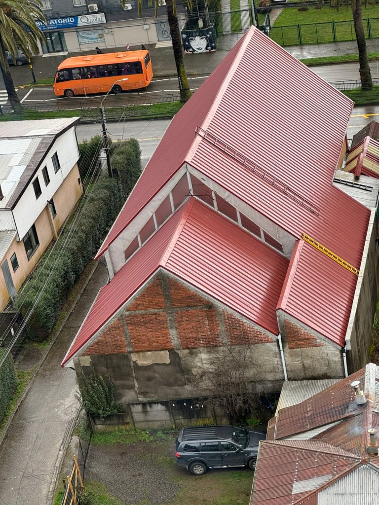 Valdivia es conocida por ser una de las ciudades con el clima más exigente de Chile. Por eso, cuando recibimos el encargo de renovar la techumbre de esta importante institución religiosa, el objetivo fue claro: seguridad absoluta y durabilidad estética.